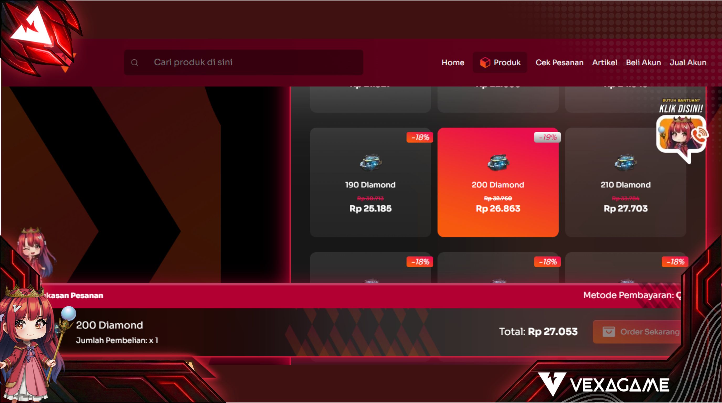 Vexa Game menawarkan harga yang transparan sejak awal tanpa ada biaya tambahan yang disembunyikan di balik proses checkout. Untuk 200 DM, kalian cuma perlu bayar sekitar Rp26.863 saja dari harga normal yang biasanya mencapai Rp32.760.