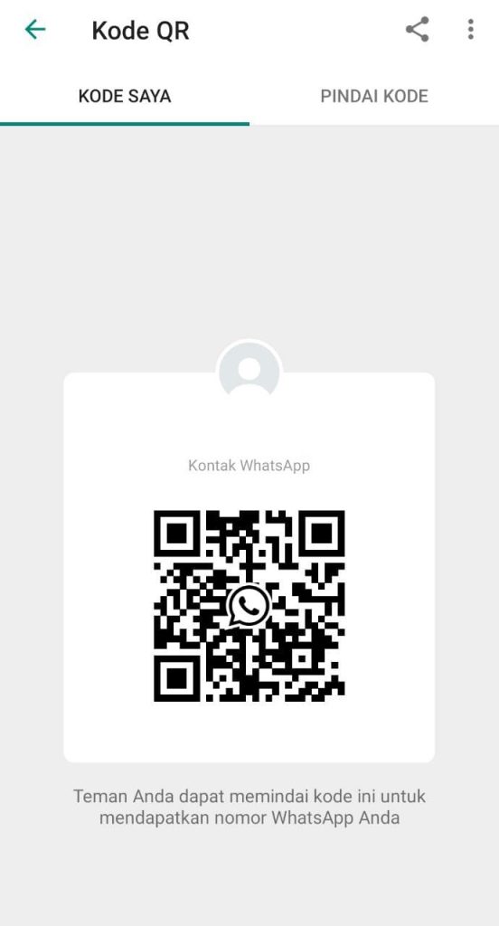 QR Code merupakan salah satu cara yang dikembangkan untuk memudahkan dalam melakukan transaksi secara cepat hanya dengan melakukan pemindaian menggunakan kamera HP pada QR Code. Fitur ini sangat bermanfaat untuk mempercepat proses penambahan kontak. Dimana pengguna WhatsApp hanya perlu membuka pada layanan chat kemudian tambahkan kontak dengan QR Code. Jadi kita tidak perlu susah-susah untuk menuliskan nomor untuk menambahkan kontak whatsapp. Sehingga ketikka dalam keadaan tergesa-gesa bisa menambahkan kontak dan berbagi kontak kepada pengguna lain secara cepat.