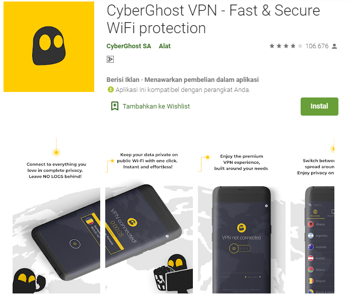 CyberGhost VPN merupakan rekomendasi aplikasi vpn android terbaik dimana memiliki fitur proteksi dan menyediakan layanan streaming khusus. Fitur lainnya yang disediakan oleh CyberGhost VPN ini adalah mempunyai 256AES Encryption untuk melindungi data pribadi, proteksi wifi, one tap connect dan tanpa kebijakan log. Download aplikasi disini