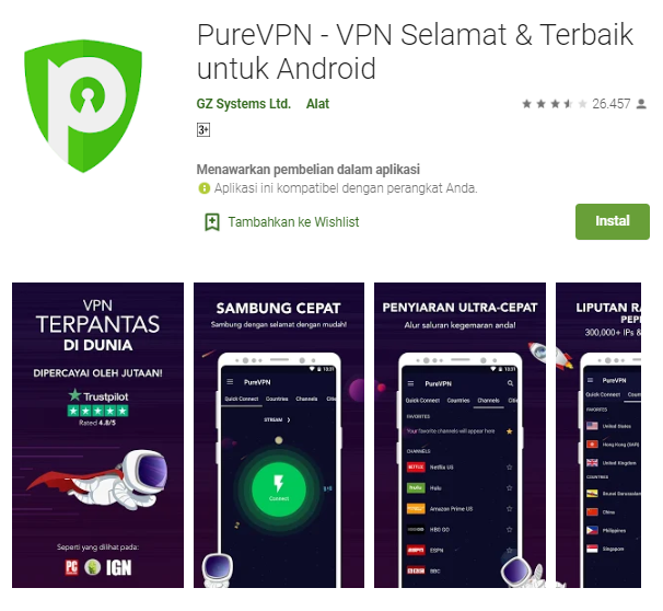 4. PureVPN - VPN Selamat & Terbaik untuk Android