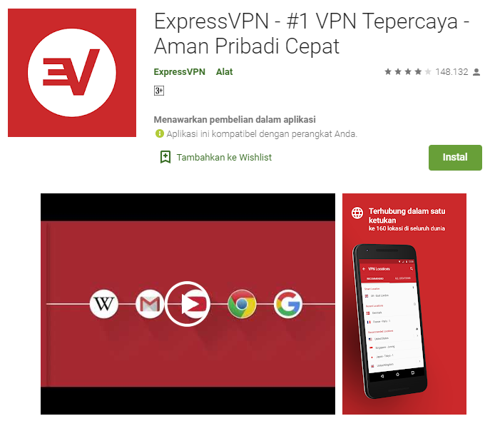 Aplikasi ini merupakan salah satu rekomendasi aplikasi vpn android terbaik untuk melindungi privasi dan keamanan data saat digunakan dalam mengakses internet dengan membuat jaringan pribadi. Jaringan VPN juga memiliki 3.000+ server VPN di 160 lokasi di 94 negara sehingga dapat mempunyai kecepatan dan bandwidth tidak terbatas.