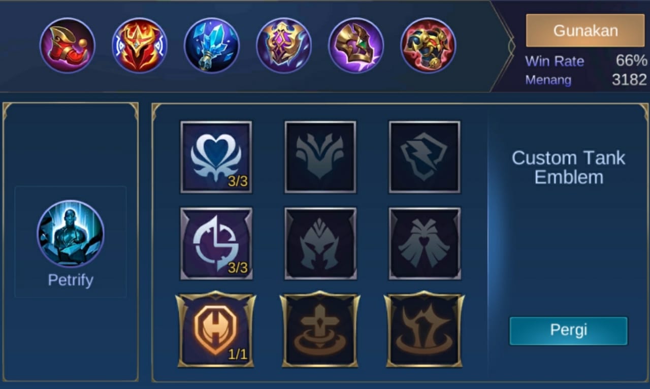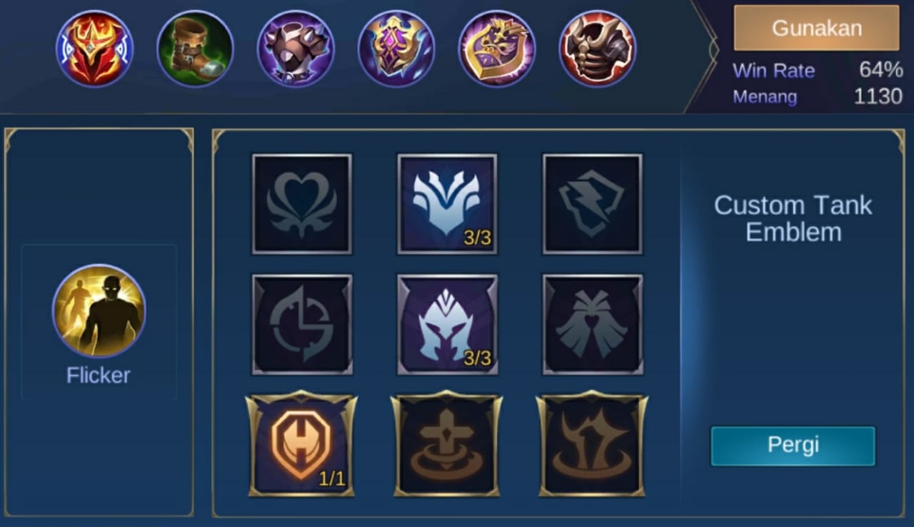 Emblem : Tank, dengan setting seperti itu maka akan menjadi emblem paling tepat untuk Johnson