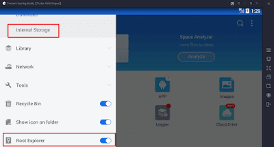 Jika sudah kamu Install, kemudian kamu buka aplikasi tersebut. Lalu jangan lupa Aktifkan “Root Exploler” dan masuk ke direktori “/” yang berada pada Internal Storage.
