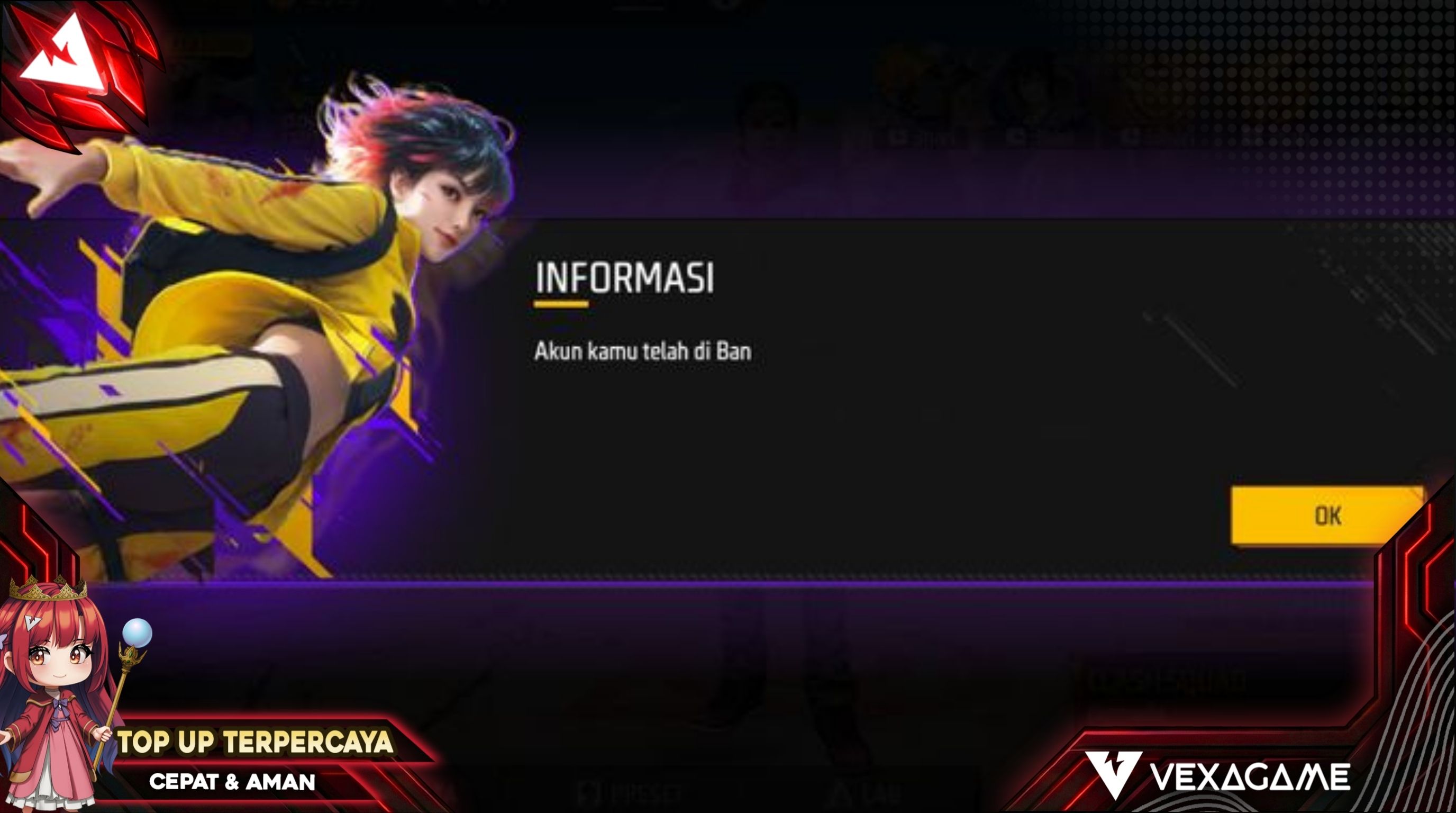 Sudah aman akunnya? Kalau akun sudah terlindungi maksimal, sekarang waktunya bikin tampilan karaktermu makin sangar tanpa rasa khawatir! Segera lengkapi koleksi bundle dan skin senjata impianmu dengan top up FF hanya di Vexagame, tempat paling terpercaya, murah, dan otomatis masuk dalam hitungan detik!