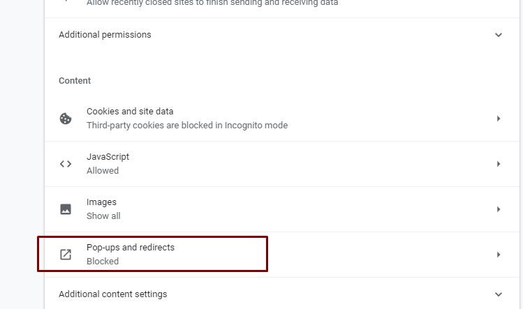 - Selanjutnya, sobat scroll paling bawah dan pilih Pop-ups and Redirects