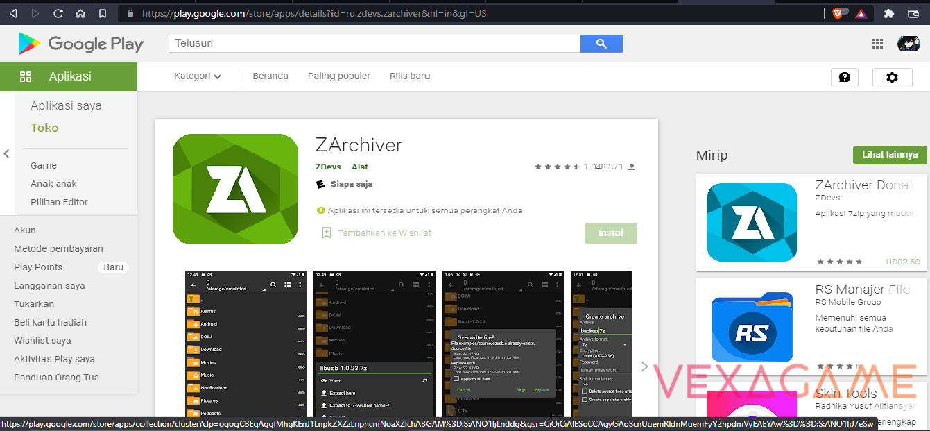Sebenarnya banyak sekali aplikasi pengekstrak yang dapat Sobat Vexa download di android, namun mimin sarankan Sobat Vexa sekalian menggunakan ZArchiver karena lebih mudah digunakan dibanding aplikasi pengekstrak sejenis.