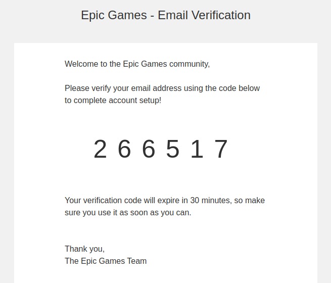 5. Lalu kalian akan dimintai kode verifikasi yang dikirimkan ke email yang sobat daftarkan. Masuk ke email kalian, buka email dari Epic Games dan isi kode verifikasi sesuai di Email