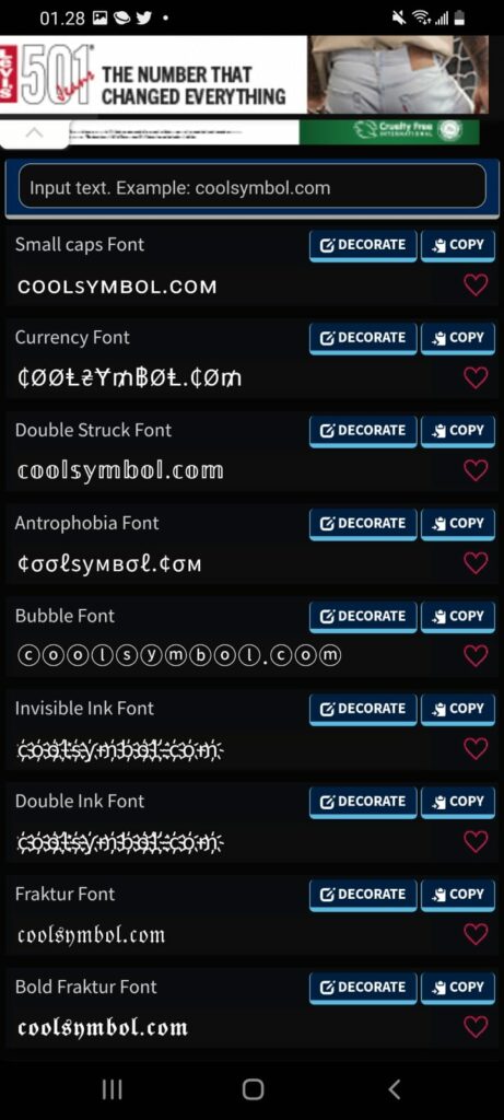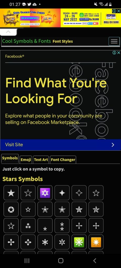 - Setelah menentukan nama yang kamu inginkan, maka selanjutnya kamu bisa masuk ke salah satu website yang sudah disebutkan di atas. Website pada contoh disini ialah CoolSymbol.com, kamu akan di sambut dengan tampilan seperti ini