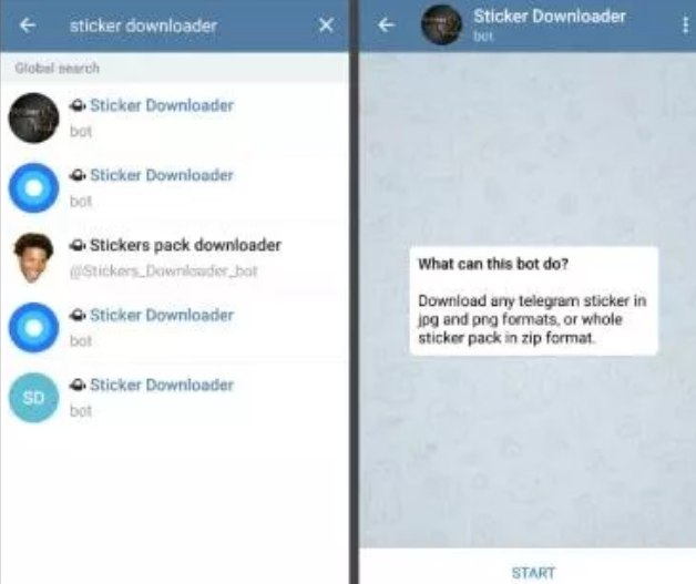 - Masukkan kata "Sticker Downloader" untuk menemukan bot tersebut