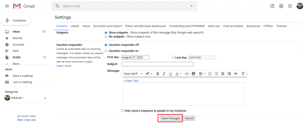 - Kemudian pilih sesuai keinginan lalu scroll ke bawah pilih Save Changes untuk menyimpan perubahan pada pengaturan fitur Undo Send