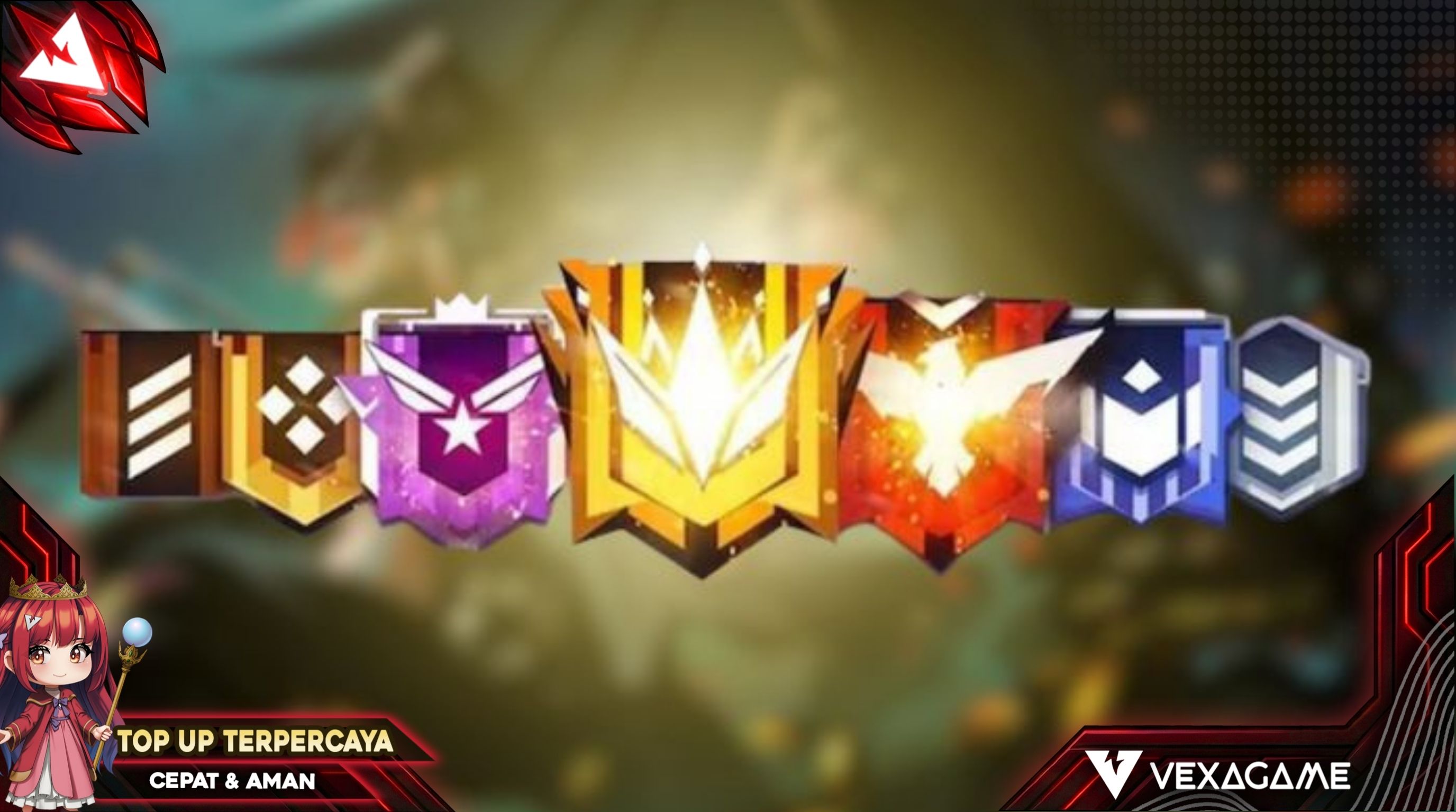 - Web Event: Seringkali ada mini game di dalam menu event yang memberikan hadiah sampingan berupa Badge. Pastikan kita selalu mengecek tab berita di dalam game Free Fire.
