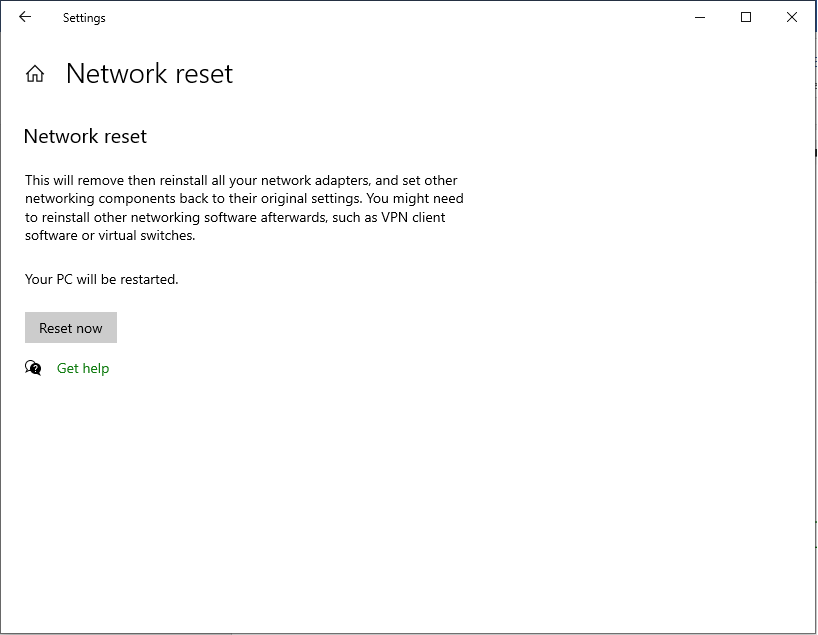 Langkah ini diambil jika semua cara sudah tidak bisa lagi, car aini merupakan cara yang paling efektif karena akan melakukan stel ulang jaringan ke default bawaan windows. Fitur yang ada dalam network reset yaitu dapat menghapus semua konfigurasi jaringan internet dalam laptop dan mengembalikan pengaturan bawaan sistem. Selain itu juga dapat menghapus aplikasi dan driver jaringan yang sudah terinstal. Berikut ini langkah-langkah untuk mengatur ulang jaringan :