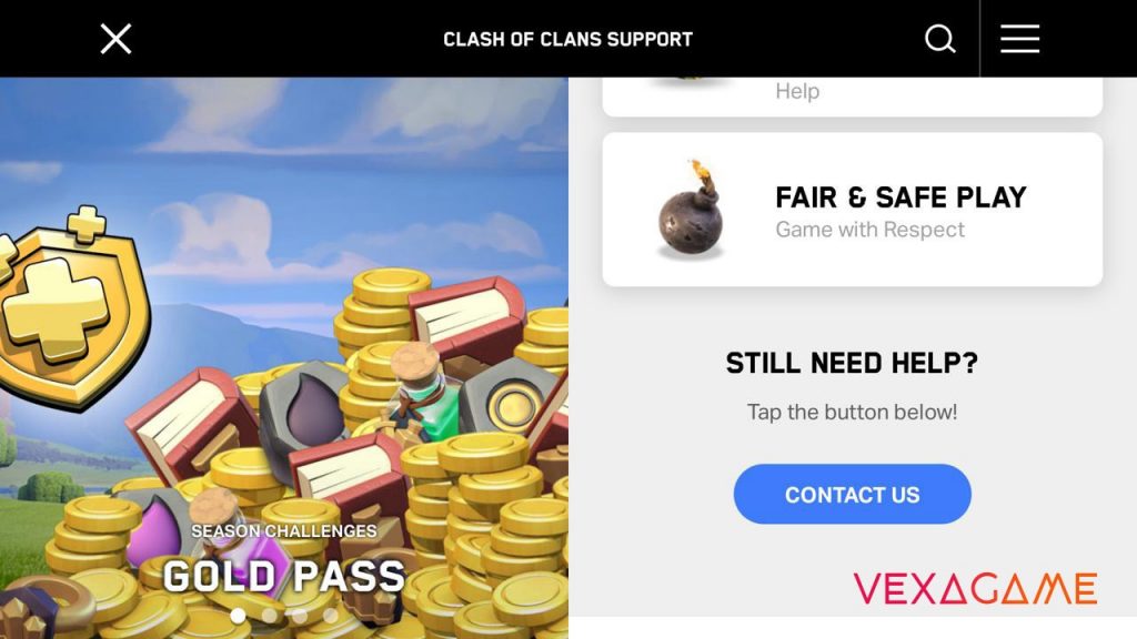 1. Halaman Support COC Android / IOS