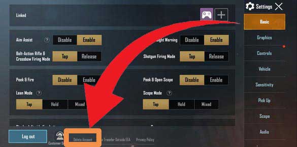 - Lalu akan muncul tab Basic, kamu akan menemukan beberapa pilihan seperti Log Out dan Delete Account