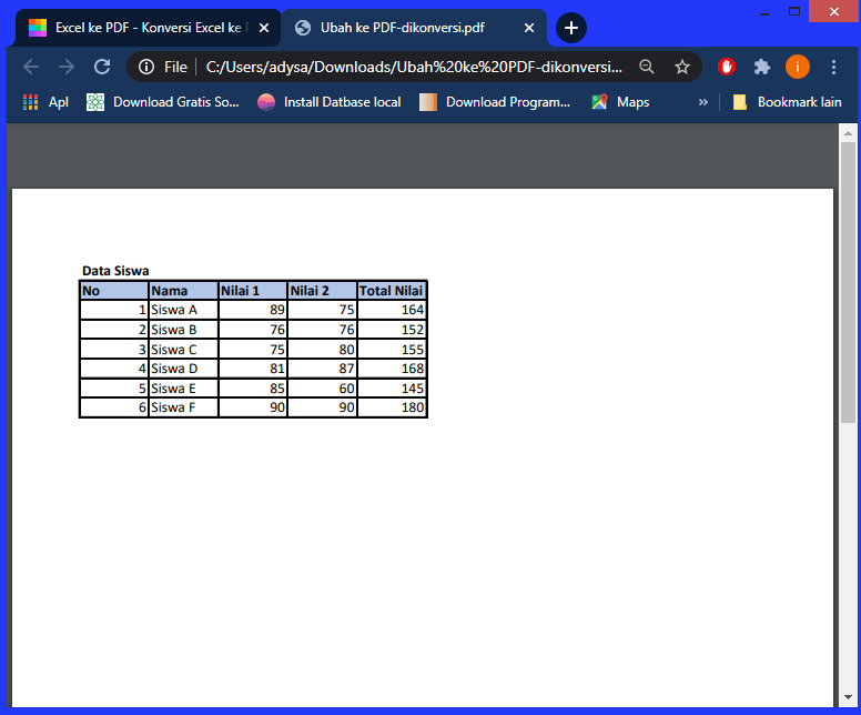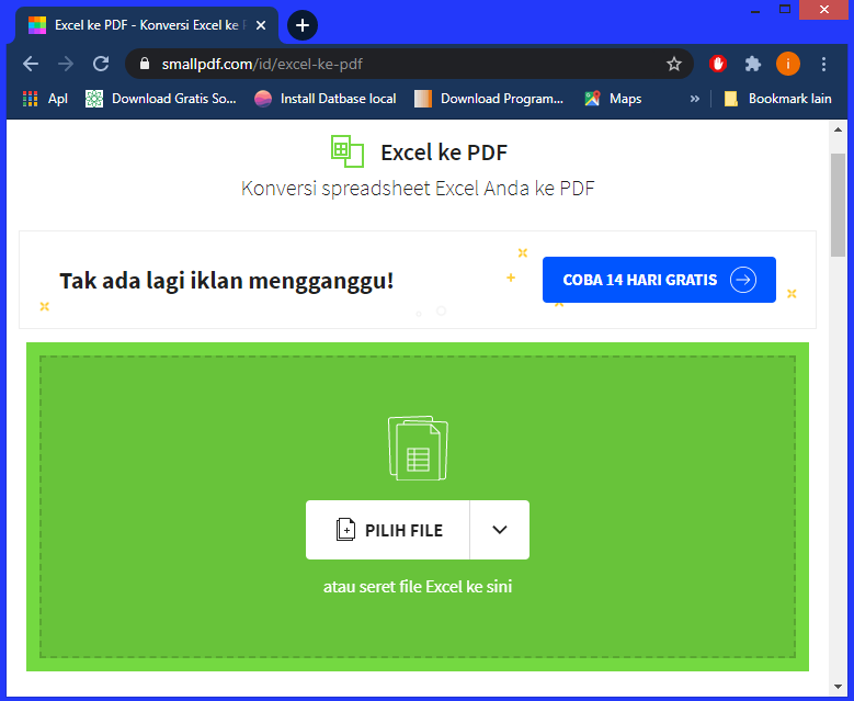 2. Mengubah Excel ke PDF menggunakan browser yaitu dengan penyedia layanan konversi excel ke PDF