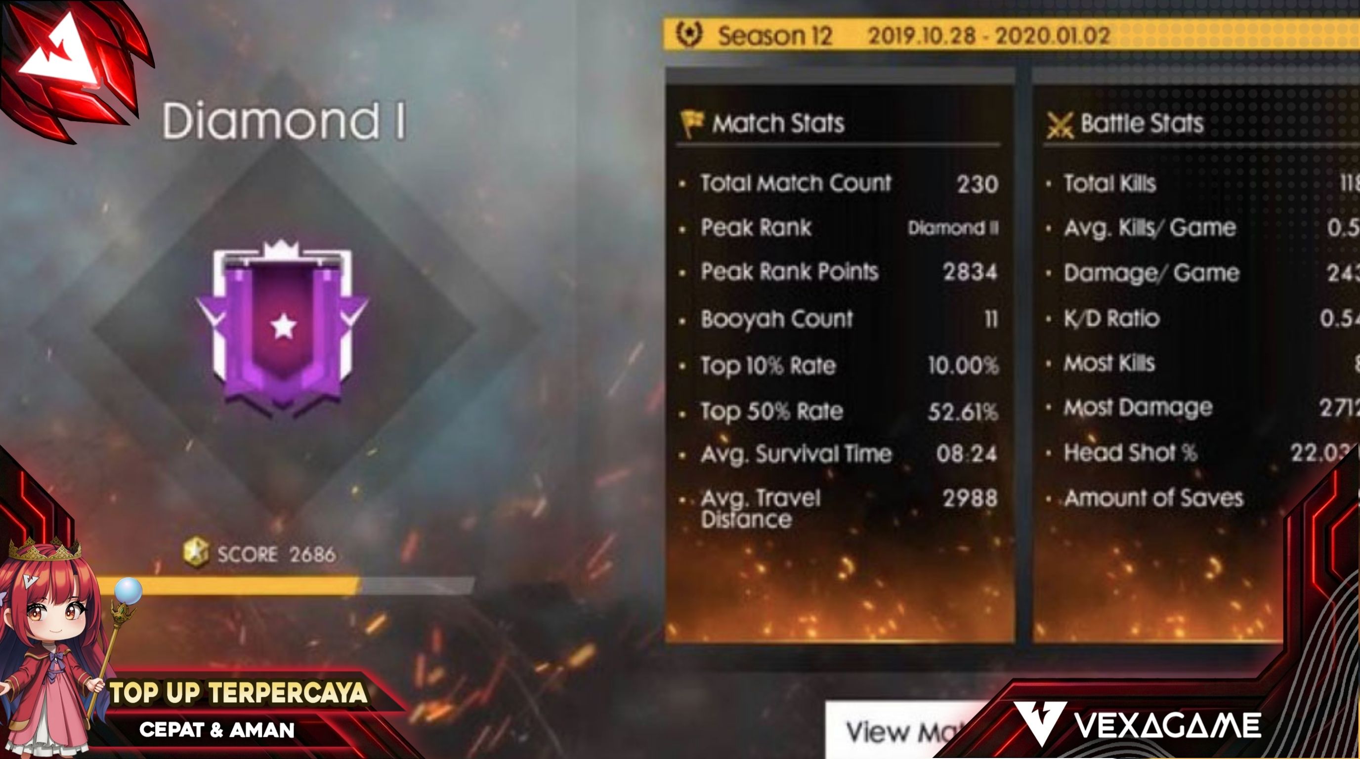 - Tapi, jika dari 10 pertandingan itu kita berhasil Booyah tanpa mati sebanyak 5 kali (artinya kita hanya mati 5 kali), maka K/D melonjak menjadi 4.0.
