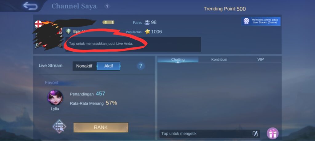 9. Tampilan seperti ini akan kamu dapati. Kamu bisa melihat berbagai macam informasi atau pilih "Catatan Live Stream" untuk melihat siapa pemberi hadiah dan history pertandinganmu serta informasi penting lainnya