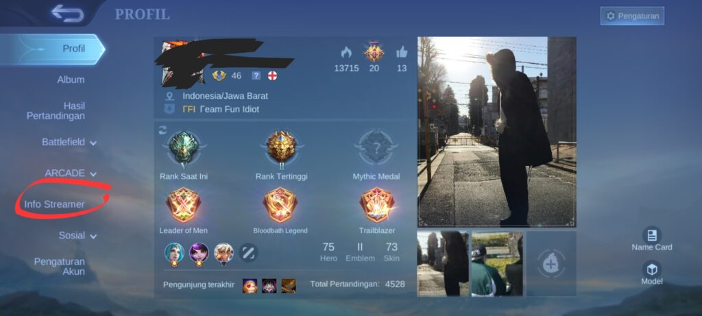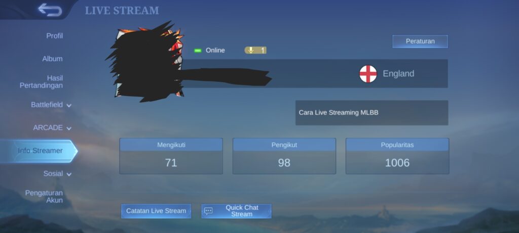 8. Kamu juga bisa menengok informasi detail mengenai live streaming mu dengan beralih ke profil dan pilih "Info Streamer"
