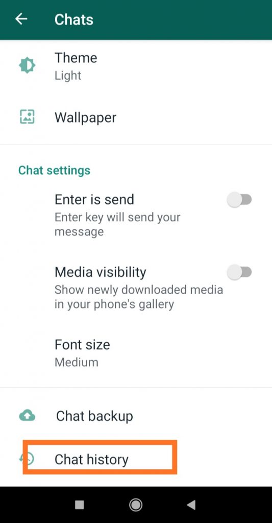 - Masuk ke menu setting – chat – chat history