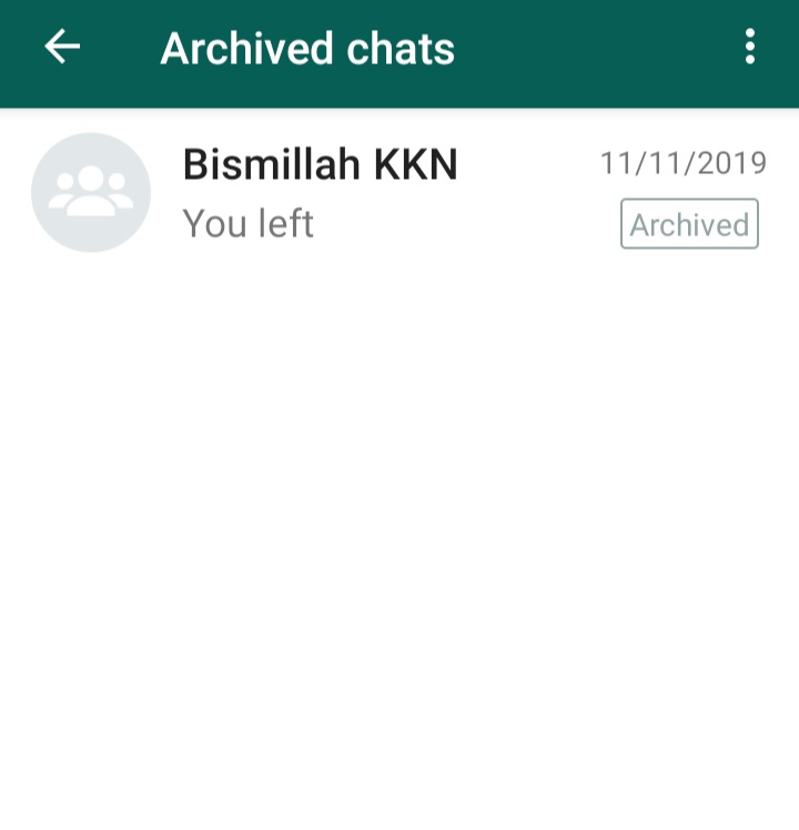 - Selanjutnya akan muncul ikon atau simbol arsip (archive) disamping tanda titik tiga di bagian atas layar chat