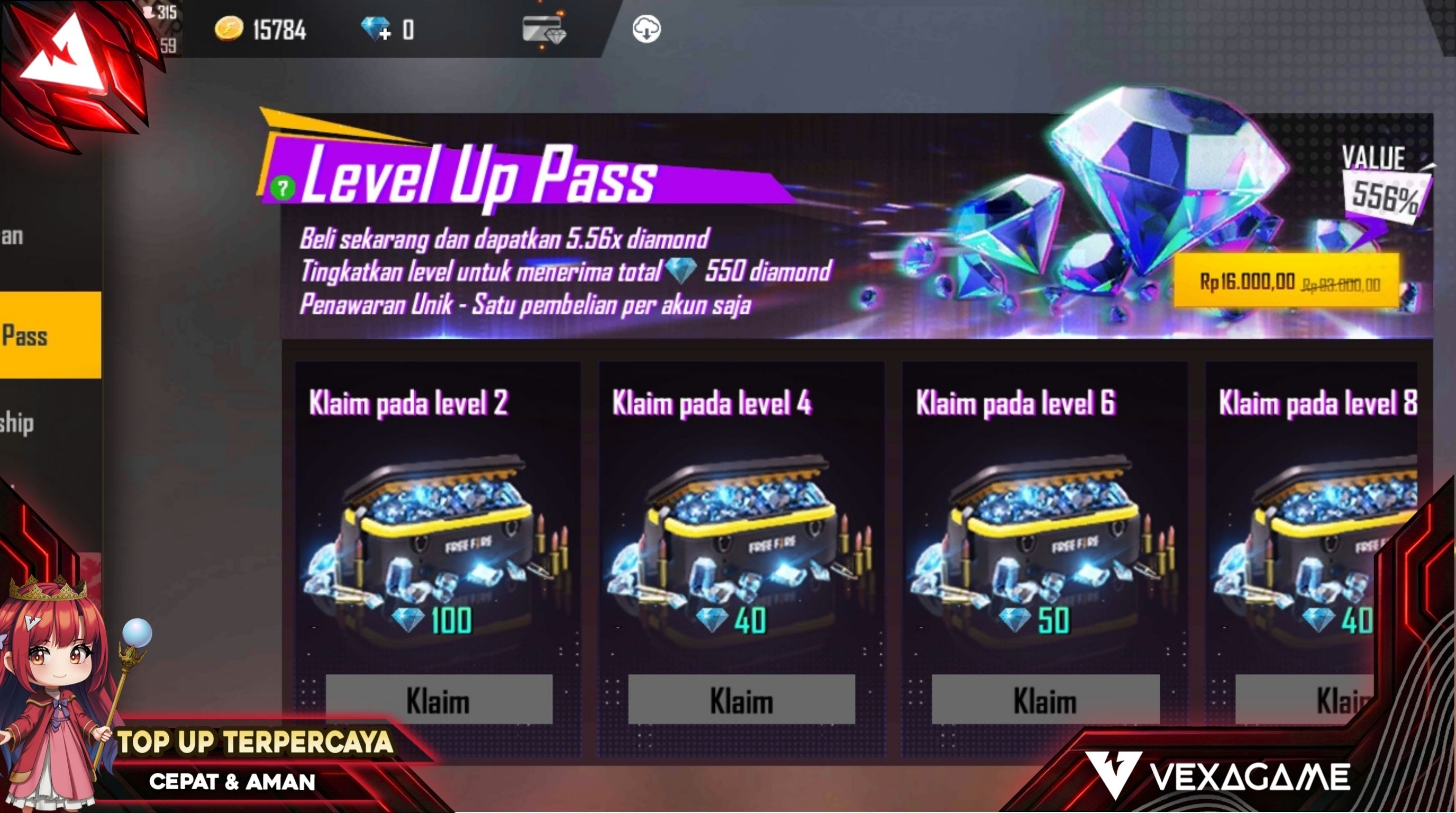 Tutorial Cara Top Up Level Up Pass FF di Vexagame