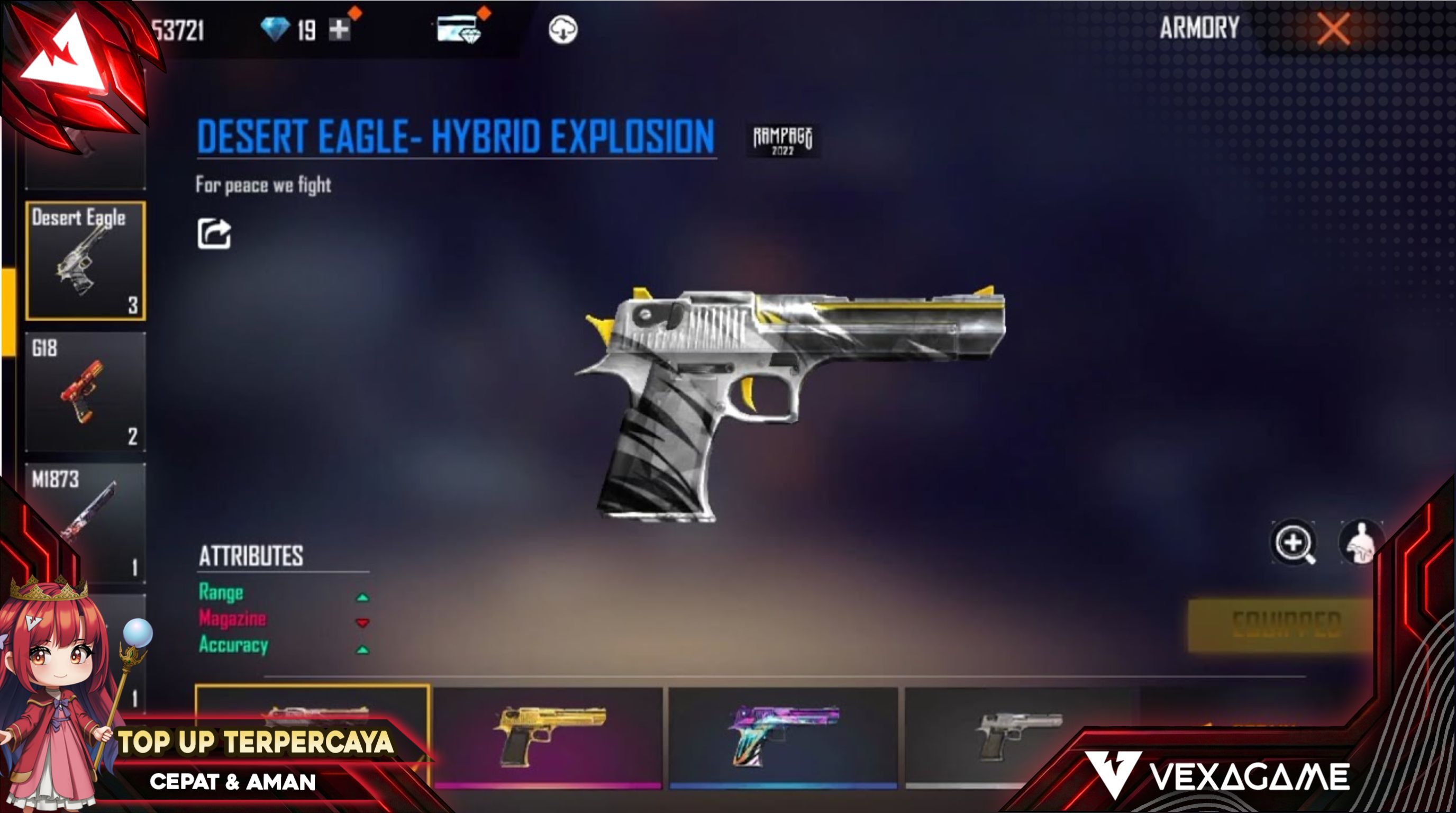 Kalau disuruh pilih satu pistol buat bertahan sampai zona terakhir, kamu bakal lebih pilih Desert Eagle yang damage-nya besar atau USP yang punya rate of fire lebih cepat? Apapun, kamu perlu top up diamond Free Fire di Vexa Game buat bantu upgrade skin dan weapon!