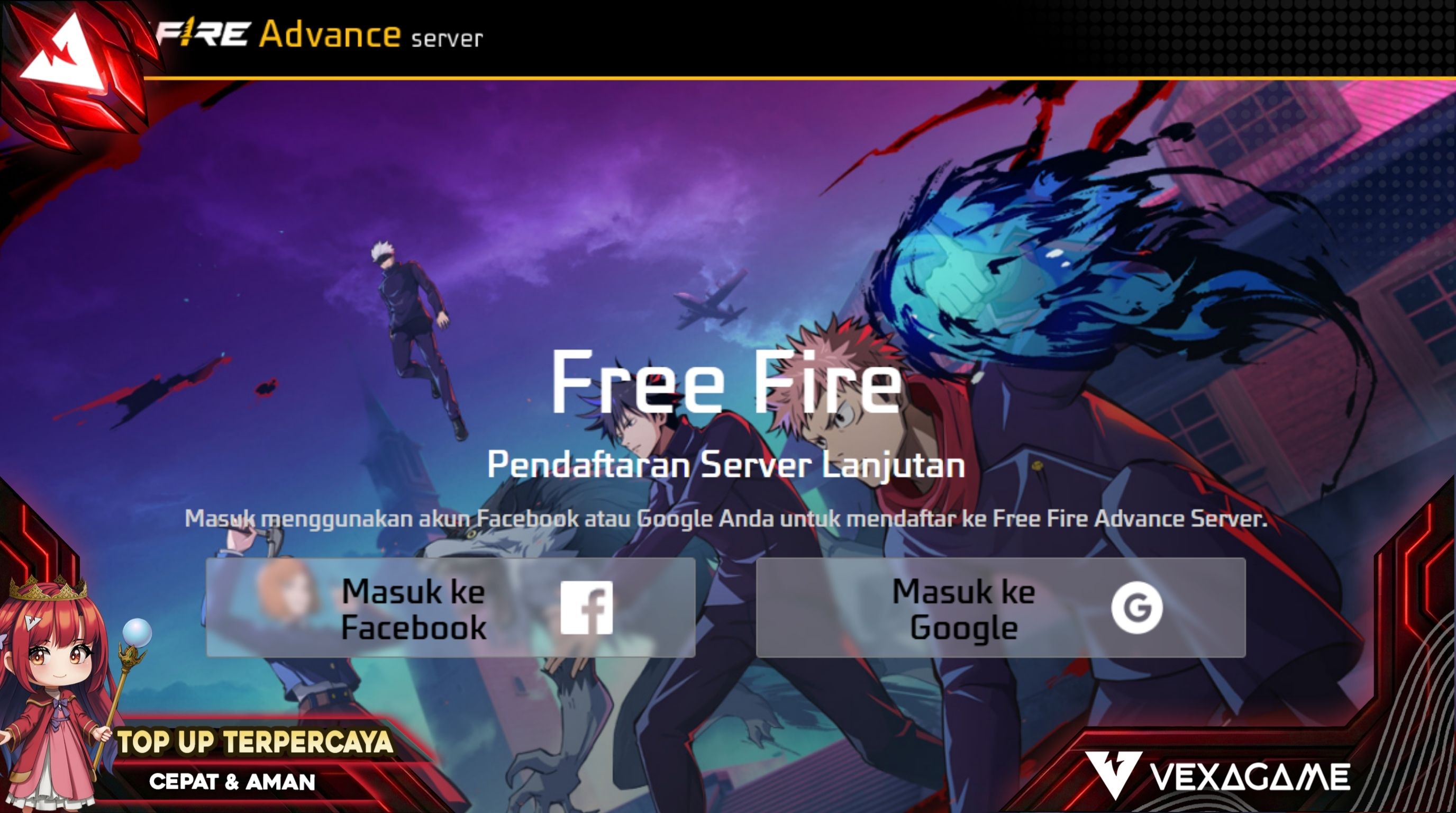 - Login Akun: Kamu bisa pilih login menggunakan akun Facebook atau Google yang sudah tertaut dengan akun Free Fire aktifmu.