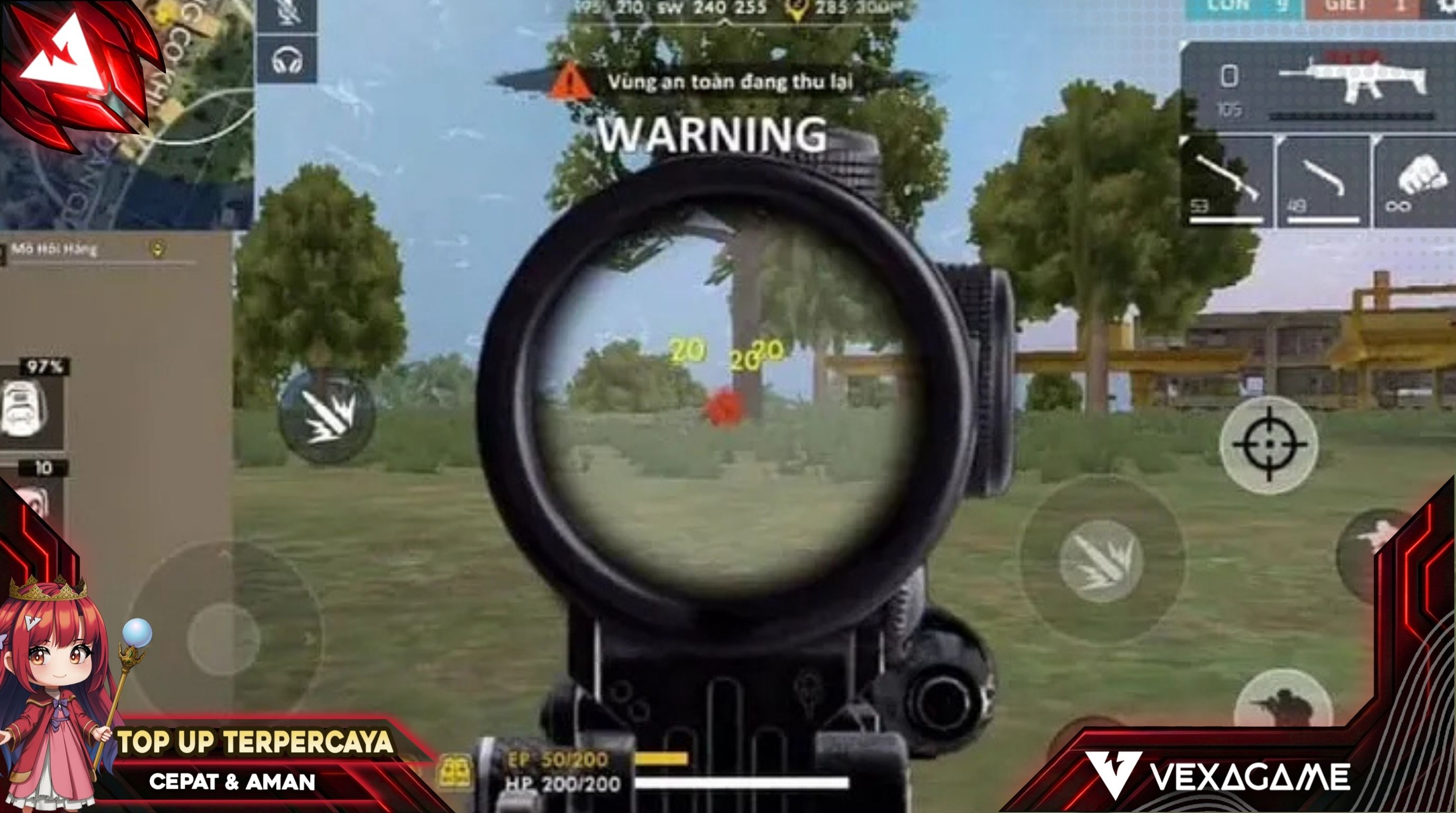 - Kelebihan Utama: Dengan Biometric Scope, Kar98k memiliki fitur semacam aim-assist ringan yang membantu identifikasi posisi dan HP target, sehingga memudahkan tracking tembakan. Hal ini menjadikannya sniper paling ramah bagi pemain yang baru belajar peran sniper di Free Fire.