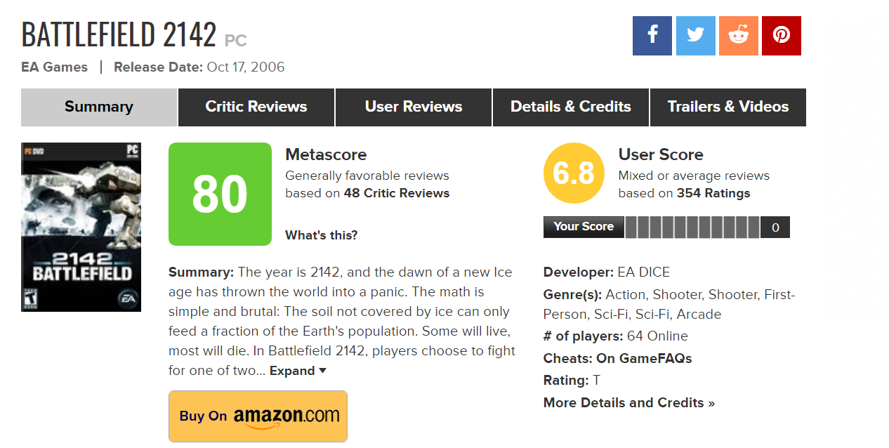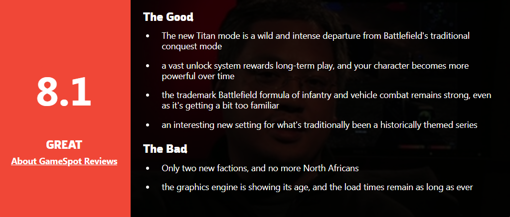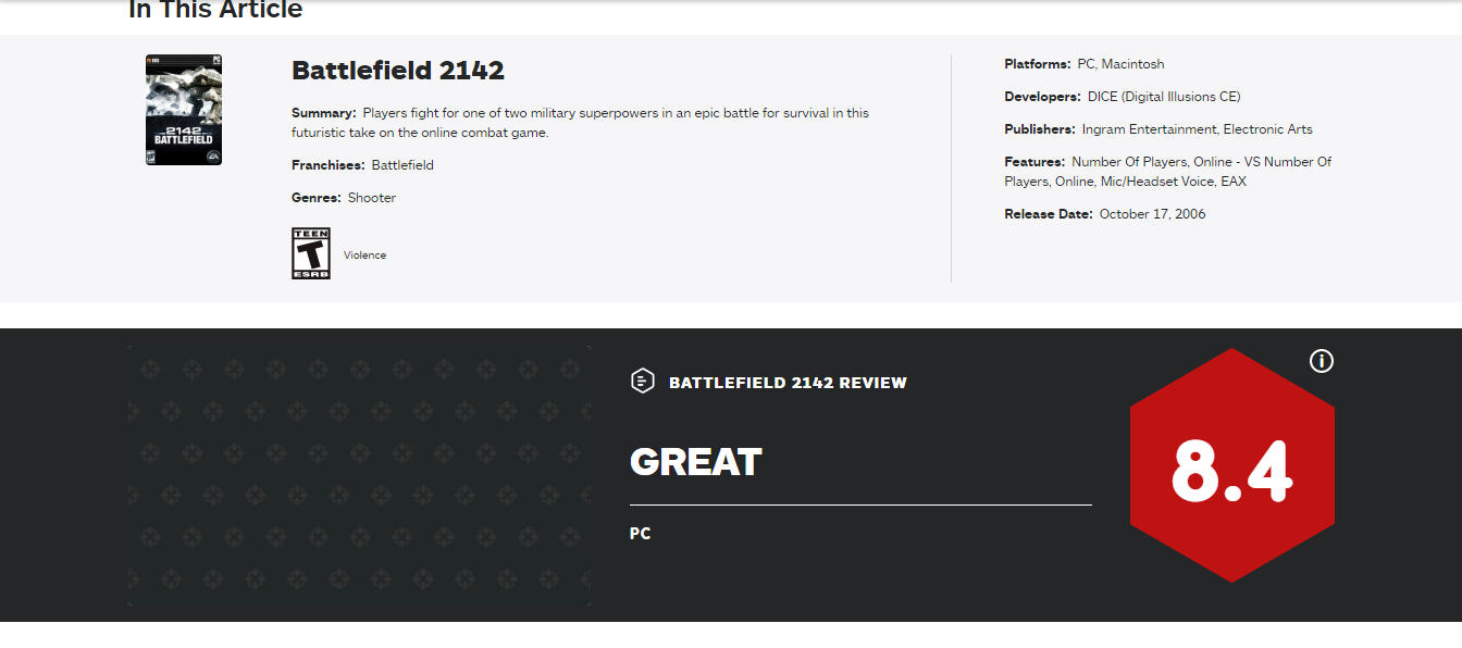 Ada beberapa website yang telah memberikan review pada game Battlefield 2142 ini. Dari 3 website yang akan kamu nanti, maka kamu bisa menilai sendiri bagusnya game satu ini bagi para player-playernya. Berikut adalah beberapa website yang telah memberikan nilai reviewnya akan game Battlefield 2142 yang wajib kamu ketahui:
