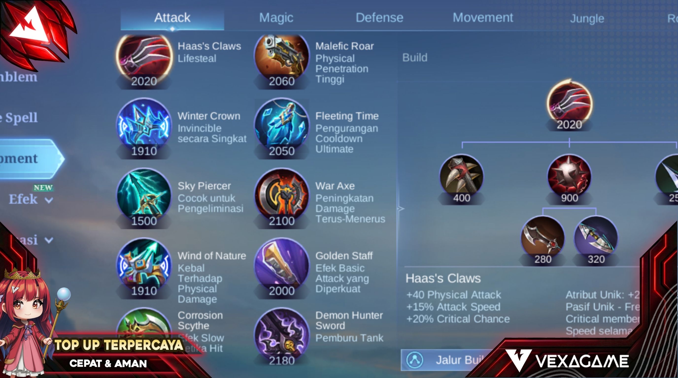 - Jangan menyalin build secara mentah tanpa melihat situasi permainan. Build rekomendasi hanyalah referensi awal, bukan aturan mutlak yang harus diikuti di setiap match.